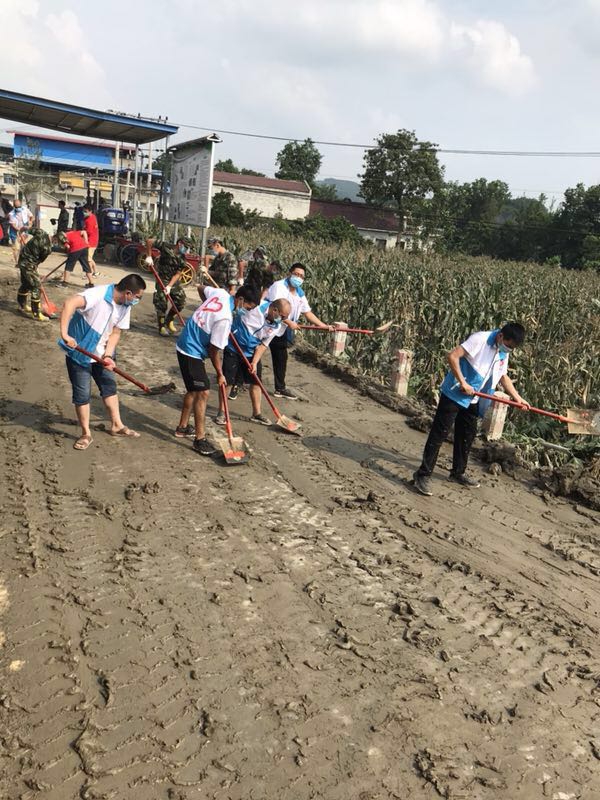 洪災過后,我公司志愿者積極參與災區清淤工作7月14日,我公司團委志愿者們與縣救災民兵一起抵達金華鎮黑水浩村進行災后清淤工作。洪水過后所浸之處留下了厚厚的淤泥和大量垃圾,志愿者們頂著烈日,不怕苦、不怕累,自帶鐵楸等物資,沿著布滿淤泥的街道開